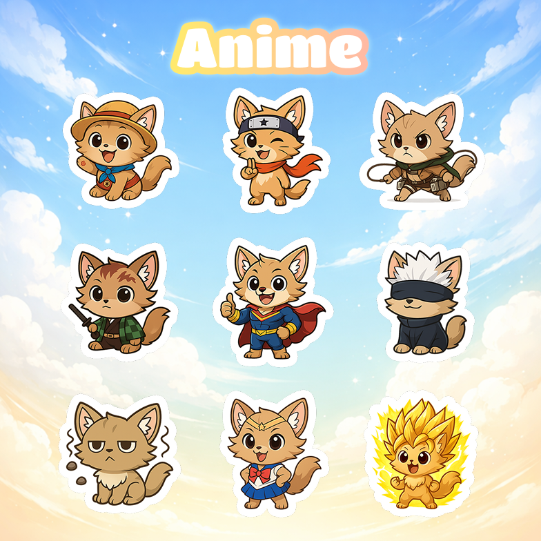 Designs are inspired by broad anime/fantasy archetypes, no specific characters, trademarks, or logos.